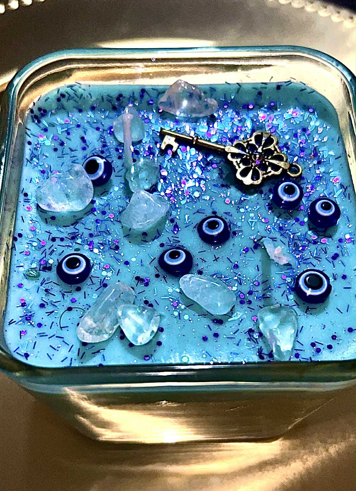 Whether you’re manifesting peace, calling in divine guidance, or releasing what no longer serves you, this candle helps you stay grounded and aligned through it all—with a touch of shimmer to keep your light strong.
